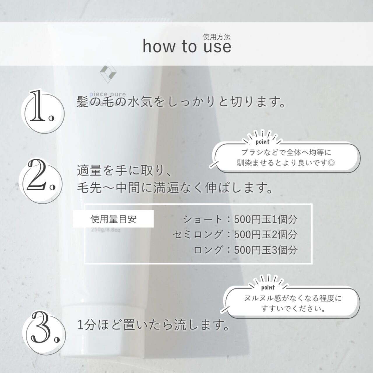 洗髪後、適量を髪全体になじませて